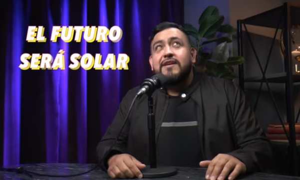 A Mexican podcast presenter and the headline: "El futuro será solar"